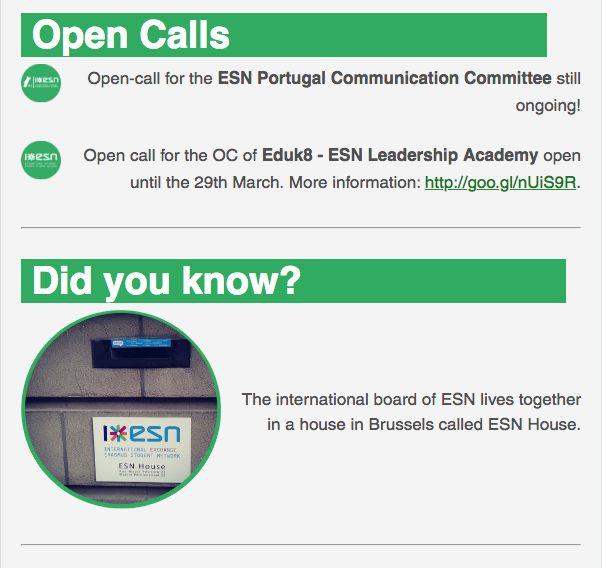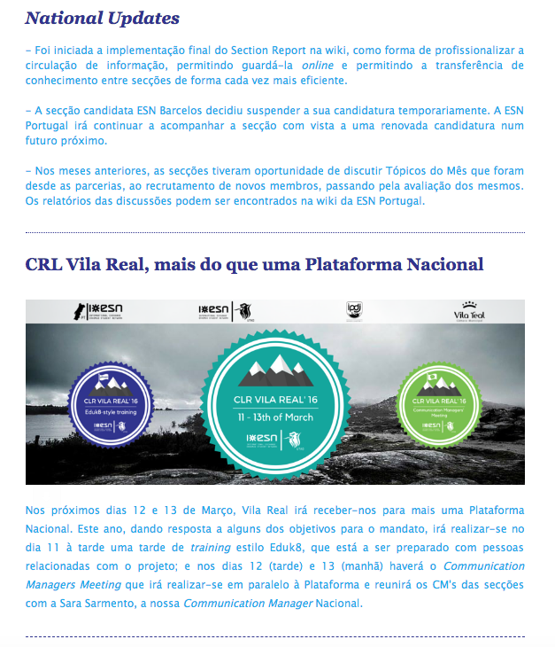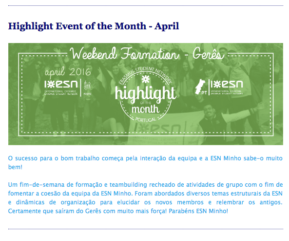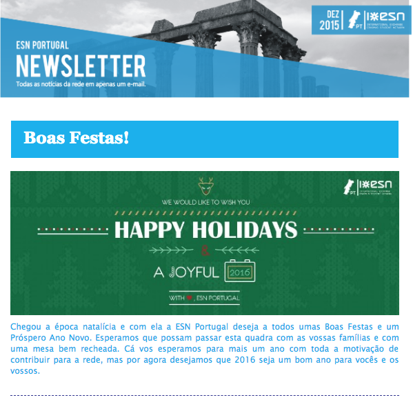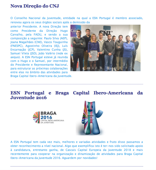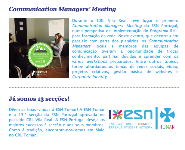 Later on, as the Communication Manager of ESN Portugal, I was responsible for coordinating with the Committee members who designed and edited the Newsletter.